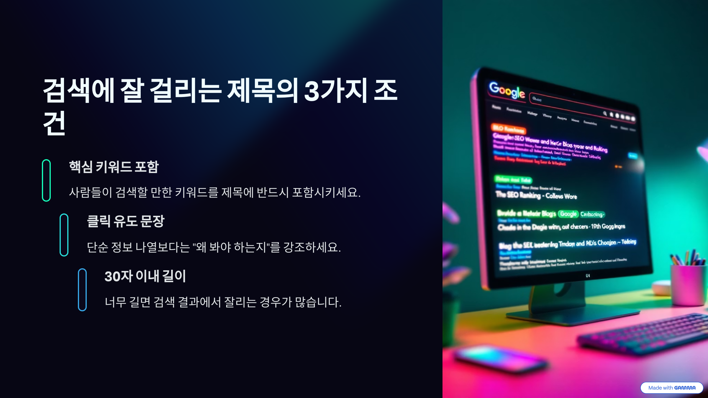 블로그 글에서 제목과 소제목은 단순한 포맷이 아니라, 검색 유입과 클릭률을 결정짓는 핵심 요소입니다.